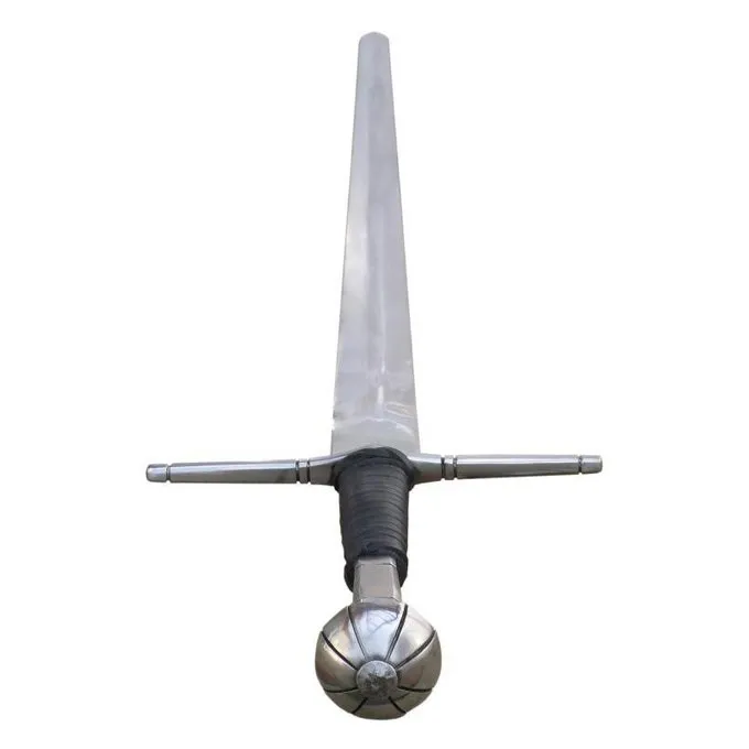 Dieses luxuriöse Anderthalbhänder-Schwert hat einen einzigartigen Griff. Bei diesem Knauf handelt es sich um einen kunstvoll verarbeiteten Duftstopper-Knauf, und die Parierstange ist gerade, aber mit der gleichen dekorativen Oberfläche wie der Knauf gefertigt. Schwerter wie dieses kamen im späten 14. und frühen 15. Jahrhundert in ganz Europa vor. Diese Replik ist einem französischen Original nachempfunden. Ähnliche Schwerter kamen im späten 14. und frühen 15. Jahrhundert in ganz Europa vor.