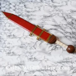 Dieses spatha auf Originalen, die in der römischen Armee zwischen dem 2. und 5. Jahrhundert dient, durch germanische auxiliae verwendet wurden. Im Gegensatz zu dem Gladius war der Spatha länger und es wurde als Hieb Waffe verwendet. Diese Spatha hat einen Griff aus Holz und Knochen. Es wird mit einer Scheide geliefert.