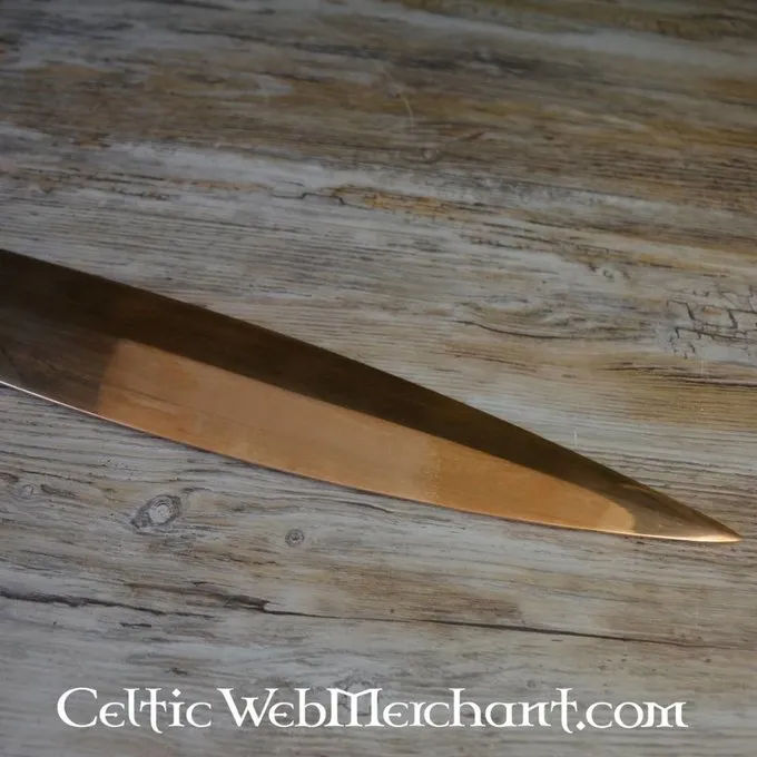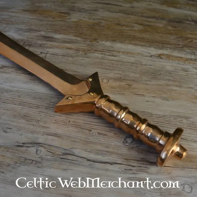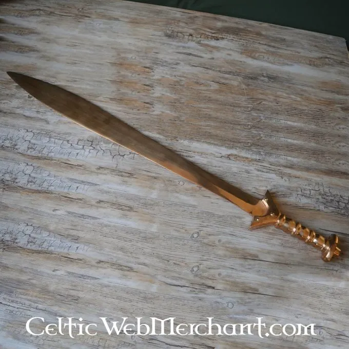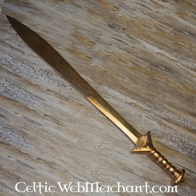 Produktdetails: Länge: 82 cm / Klingenlänge: 66 cm / Grifflänge: 16 cm / Gewicht: 1480 g / Stahltyp: Bronze / Schneide: Semi-Schärf / Tang-Konstruktion: Voll Tang-Konstruktion inclusief Knauf / Griffwicklung: Bronze / Auf der grundlage Eines historic Orig