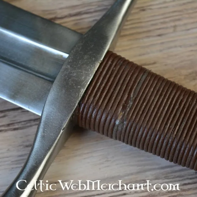 Produktdetails: Länge: 96 cm / Klingenlänge: 79 cm / Grifflänge: 17 cm / Klingen bei Parierstange: 4,5 cm / Gewicht: 1150 g / Saldo Punkt Parierstange: 14 cm / Stahltyp: EN45 Federstahl, Härte 48-50 HRC / Schnitte : Semi-Schärf / Tang-Konstruktion: Voll T