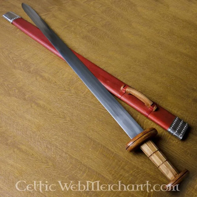 Details: Material: Kohlenstoffstahl Härte 48 HRC. / Gesamtlänge: 90 cm / Klingenlänge: 75 cm / Halb Schärf 0,5 mm / Pomme (obere Parierstange) verschraubt / Full tang / Gewicht: 940 g / Auf der Grundlage eines historischen Originals /