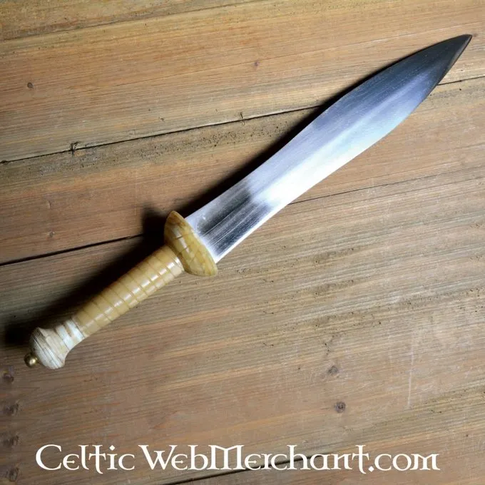 Diese Gladiator Dolch ist 49 cm lang und besteht aus Kohlenstoffstahl. Der Griff ist aus Knochen