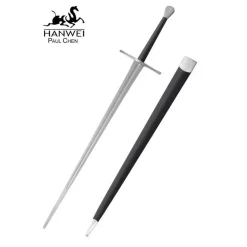 Produktdetails: Länge: 105 cm / Stahltyp: EN45 Federstahl, Härte 48-50 HRC / Schneide: Semi-Schärf / Tang-Konstruktion: Voll Tang-Konstruktion / Knauf: Screwed / Griffwicklung: Holz, Leder / Auf der Grundlage eines historischen Originals : Ja /