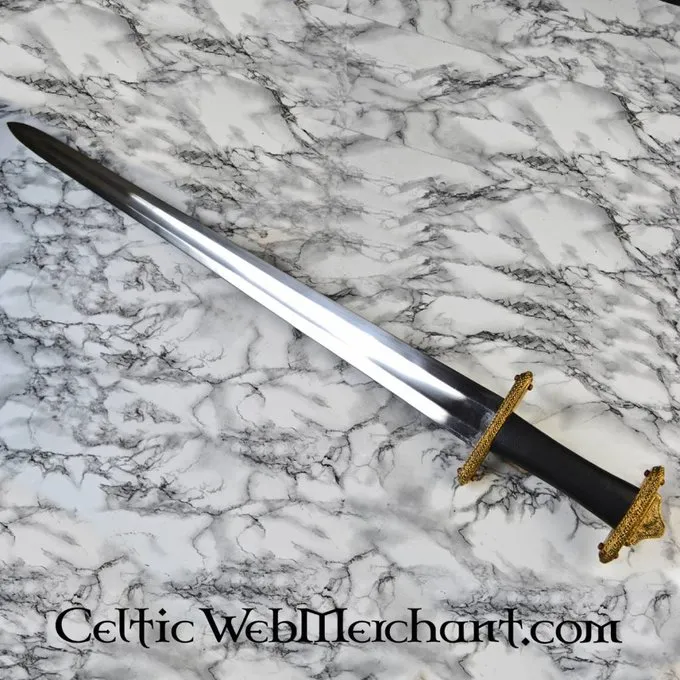 Dieses Schwert wird nach einem frühen nordischen Wikingerschwert aus dem 8. Jahrhundert hergestellt. Schwerter wie diese sind in ganz Europa und sie sind eine direkte Entwicklung des Spatha gefunden. Um diese Zeit hatten die frühen mittelalterlichen Schwerter einen relativ kleinen Knauf und zwei lange Parierstangen.