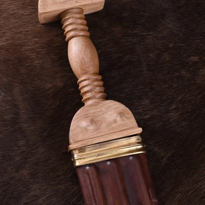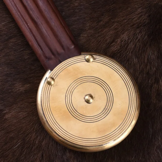 Diese Spatha ist keine exakte Kopie von 1 particular Museumsstück, aber es basiert auf Original-Überreste von mehreren Spathas aus dem zweiten Jahrhundert nach Christus. die in dem Limesmuseum in Aalen, Deutschland ausgestellt. Vom Ende des zweiten Jahrhunderts begann die Spatha Popularität unter den römischen Legionäre und auxiliae zu gewinnen, auf Kosten des Gladius. Die Spatha war viel länger als die Gladius, so war es auch perfekt für die Kavallerie-Truppen. Die Infanterie trug die Spatha auf der rechten Seite und die Kavallerie es auf der linken Seite durch. Diese spatha hat einen schönen Holzgriff und einen verschraubten Knauf. Es ist mit einem Holzkern mit einer Lederscheide geliefert. Die Scheide hat einen schönen Messing Gurtschlaufe (für Gürtel bis zu 5,5 cm breit) und Messing-Armaturen auf der Ober- und Unterseite.