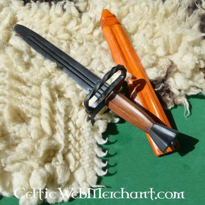 Produktdetails: Länge: 46 cm / Klingenlänge: 31 cm / Grifflänge: 15 cm / Klingen bei Parierstange: 5 cm / Gewicht: 900 g / Stahltyp: EN45 Kohlenstoffstahl Härte 48 HRC. / Schneide: halb scharf / Tang-Konstruktion: Voll Tang-Konstruktion / Knauf: geschraub