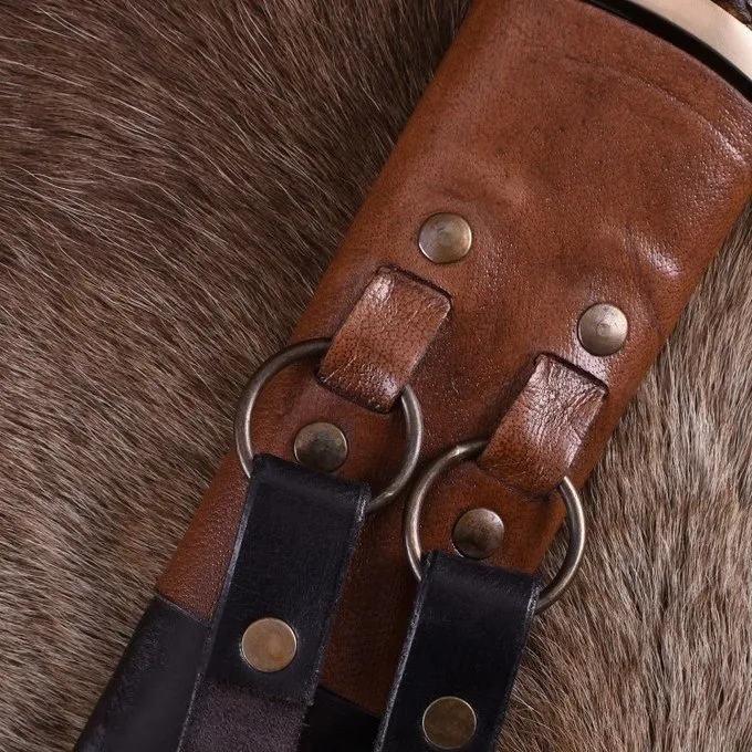 Material: EN45 Federstahl, Härte 48 HRC, Holz, Leder, Messing / / Länge: ca. 97 cm / / Klingenlänge: ca. 79 cm / / Rand: 2 mm (halb scharf, nur für dekorative Zwecke) / / Grifflänge: ca. 12 cm / / Max. Klingenbreite: ca. 4,5 cm / / Gewicht: 1,2 kg (1,6 kg