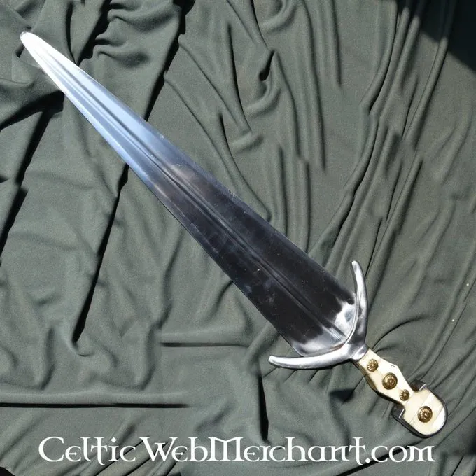 Die Cinquedea war ein italienisches Renaissance-Schwert, das wohl vor allem für Paraden verwendet wurde. Dieses Stück ist auf einem Ende des 15. Jahrhunderts Beispiel von Venedig basiert. Der Griff ist aus Knochen und verziert mit Messing-Rosetten hergestellt. Es hat eine kleine Hohlkehle und ist 63,5 cm lang. Die Cinquedea ist darunter Luxus-Scheide deliverd.