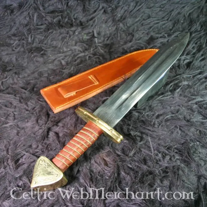 Dieser reich verzierte Dolch besteht aus mehreren Schichten aus Stahl und es wurde nur von der skandinavischen Aristokratie getragen. Der Dolch geliefert wird einschließlich einer Scheide und eine Gürtelschlaufe und es hat einen Griff aus Hartholz. Seine Länge beträgt 50 cm und die Länge der Klinge beträgt 33 cm.