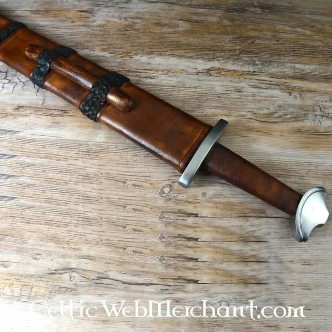 Details: Material: EN45 Federstahl Härte 48-50 HRC / Gesamtlänge: 93 cm / Klingenlänge: 77,5 cm / Klingenbreite: 5,5 cm / Knauf: geschraubt / Konstruktion: Fulltang / Semi-Schärf / Gewicht: 1300 g / auf der Grundlage von historischem Original /