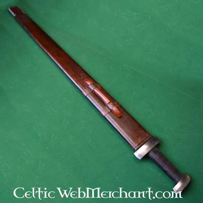 Details / Material: EN45 Federstahlhärte 48-50 HRC / Gesamtlänge: 93 cm / Klingenlänge: 78 cm / Klingenbreite: 5,8 cm / Knauf: genietet / Konstruktion: Vollzapfen / Stumpf 3 mm (kampfbereit) / Gewicht: 1311 Gramm / Nach historischem Original /
