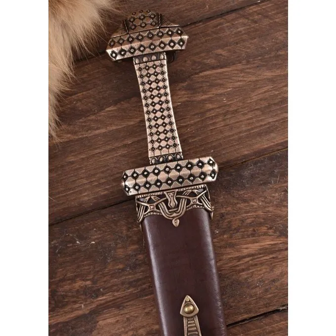 Dieses Wikingerschwert ist ein Nachbau eines Originals aus dem 10. Jahrhundert auf der Insel Eigg, Schottland gefunden. Jan Petersen klassifizierte sie als Typ D 1919. ähnliche Schwerter wurden auf der ganzen Welt zu finden Viking. Das Schwert ist halb scharf und wird mit Scheide geliefert.