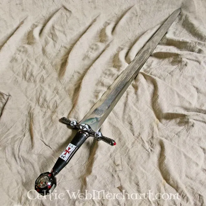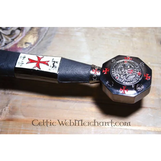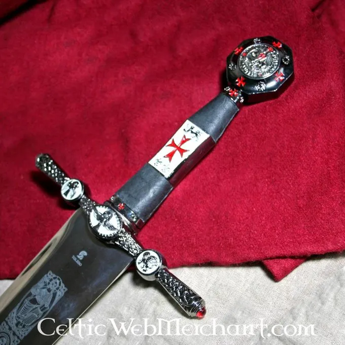 Dieses Schwert wird genau mit den Zeichen des Tempels dekoriert. Es hat eine polierte Klinge, die eingraviert ist und der Knauf mit der Dichtung des Tempelritters gemacht. Das Schwert ist eine absolute Erfassung für jeden Tempelritter und Sammler. Es ist aus schönem Toledo Stahl und seine Länge beträgt 105 cm.