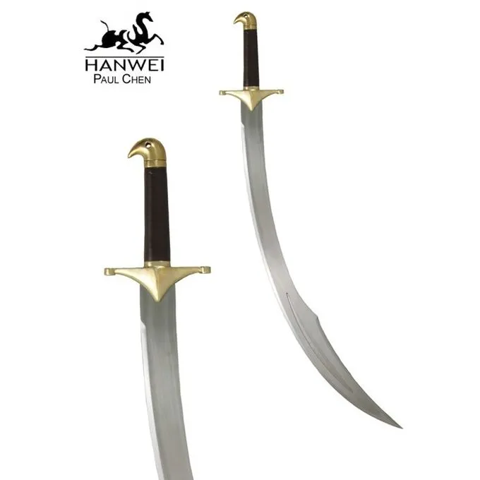 Diese Krummsäbel ist eine Nachbildung der Originale, die während der Kreuzzüge und von den Muslimen im Nahen Osten bis Jahrhunderte nach der Crusading Ära verwendet wurden. Dieser feine Krummsäbel ist halb scharf und hat einen Kohlenstoffstahl Klinge mit 50-52 HRC Härte. Der Griff ist aus Hartholz.