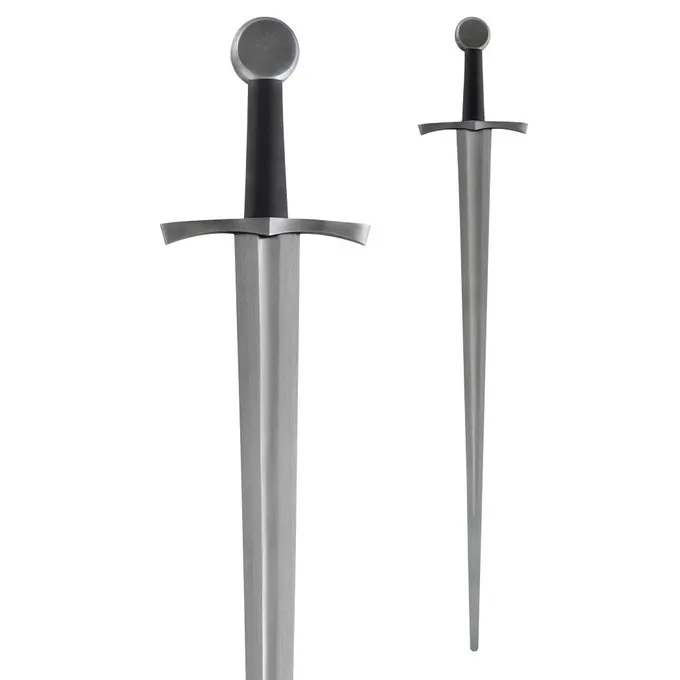 Dieses Schwert ist speziell für Schwertkampfschulen und Reenactment entwickelt. Das Schwert ist kampfbereit und die Klinge ist aus Kohlenstoffstahl mit einer Härte von HRC 50. Seine Länge beträgt 97 cm mit einer Klinge von 79 cm und wiegt ca.. 1 kg.