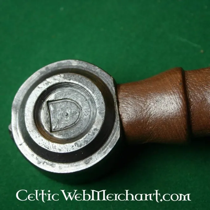 Dieses Einhandschwert hat eine Länge von 99,8 cm bei einer Klingenlänge von 80 cm und wiegt 1427 Gramm. Der gravierte Dekor auf der Parierstange und der gravierte Schild auf dem Knauf verleihen dem Schwert seinen ganz eigenen Charakter. Das Schwert besteht aus 54SiCr6-Stahl mit einer Rockwell-Härte von HRC 54 ? 56. Knauf und Parierstange sind aus Stahl.