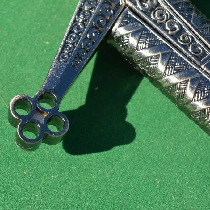 Handgefertigt (matt) – den Stahl in Cola 40 Minuten bis 20 Stunden einweichen. Überprüfen Sie regelmäßig, und behandeln mit schwarzem Sandpapier.