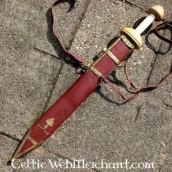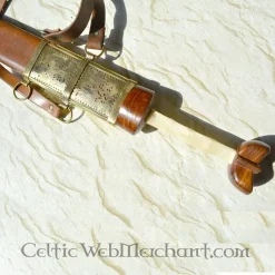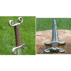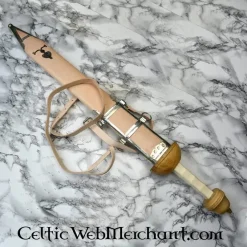 Dieser Dolch von Marto basiert auf einem keltischen Schwert aus der Eisenzeit. Im Jahr 1902 fanden Arbeiter versehentlich ein keltisches Grab auf dem Nord Grimston Anwesen. Die Celt wurde mit einem Schild, zwei Klingen und ein Stück Schweinefleisch vergraben. Das kleinste Schwert wurde mit einem anthropomorphen Griff (in der Gestalt eines Menschen) geschmückt, die typisch für Celtic Schwerter aus der La-Tene-Zeit. Solche Schwerter waren luxuriös und exklusiv. Ähnliche Schwerter wurden in der Schweiz, Ungarn, Frankreich und anderen ehemaligen keltischen Ländern. Das ursprüngliche Schwert ist jetzt auf der Anzeige am Hull und East Riding Museum und ist eines der am besten erhaltenen anthropomorphen Schwerter. Diese Celtic ornamental Dolch ist ideal für Sammler von historischen Waffen und als Hauptdekoration. Die Klinge ist aus Edelstahl gefertigt und erfordert nur wenig Wartung.