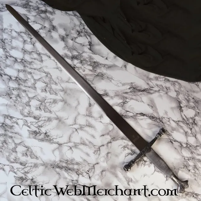 Dies ist die Nachbildung seines Schwertes. Es hat einen typischen Knauf, eine breite Parierstange und ist 100 cm lang.