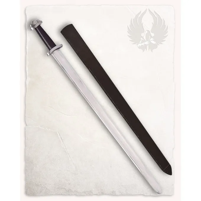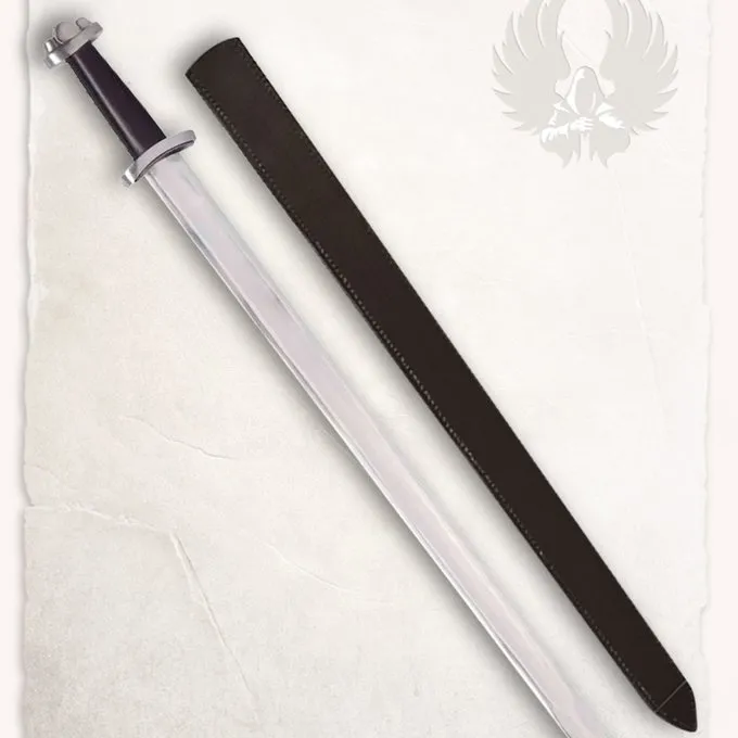 Dieses Schwert ist auf dem Godfred Wikingerschwert basiert. Es hat eine stumpfe Klinge und eine abgerundete Spitze. Das Schwert ist mit Lederscheide geliefert.