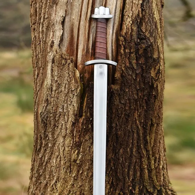 Dieses kampfbereite Viking-Schwert wurde von Volker Kunkel und dem Westküste-Institut mit Kampfsport und Hema entworfen. In diesem robusten Schwert und hoher Stahlqualität und ein leichtes Highgewicht für ein niedriges Budget perfekt zusammen. Dieses Wikingerschwert hat eine Klinge aus Federstahl 48-52 HRC.
