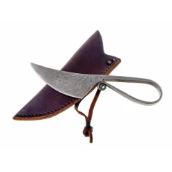 Material: Damaststahl aus Kohlenstoffstahl Typ AISI 1095 und AISI 4340 Stahl, Leder // Längenmesser: 15 cm // Messerbreite: 2,5 cm // Klingenlänge: 7,5 cm // Lieferbar Scheide / / Basierend auf einem historischen Original