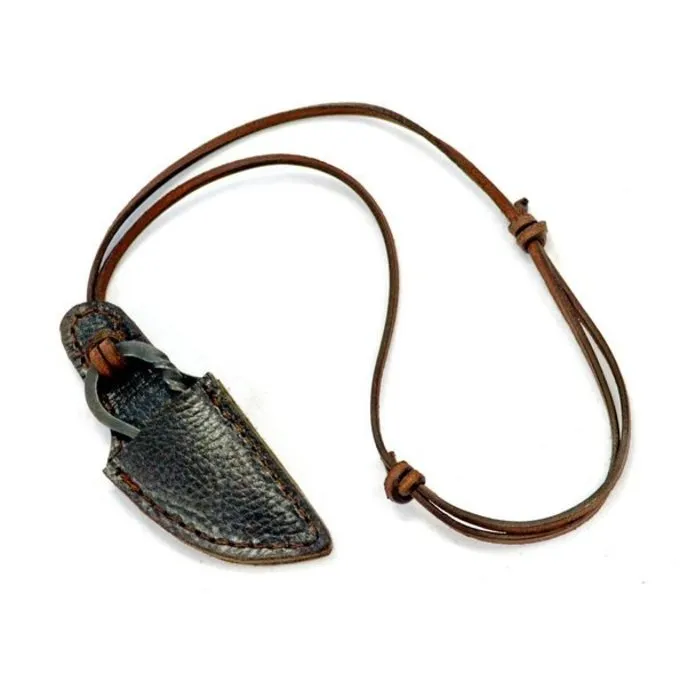Dieses handliche kleine Messer ist ein Nachbau eines original 9.-11 Jahrhundert ausgegraben in Gotland, Schweden. Es kann überall um den Hals genommen werden. Das Messer ist aus einem Stück aus Stahl hergestellt und weist eine Härte von 55 bis 56 HRC. Die Klinge hat eine Lederband, das um den Hals getragen werden kann. Dieses Messer ist mit einer Lederscheide geliefert, in dem sie sicher gelagert werden können. Das historische Werkzeug ist ideal für Reenactment sowie für Hilfe im täglichen Leben. Sie können ganz einfach das Messer erneut zu schärfen.