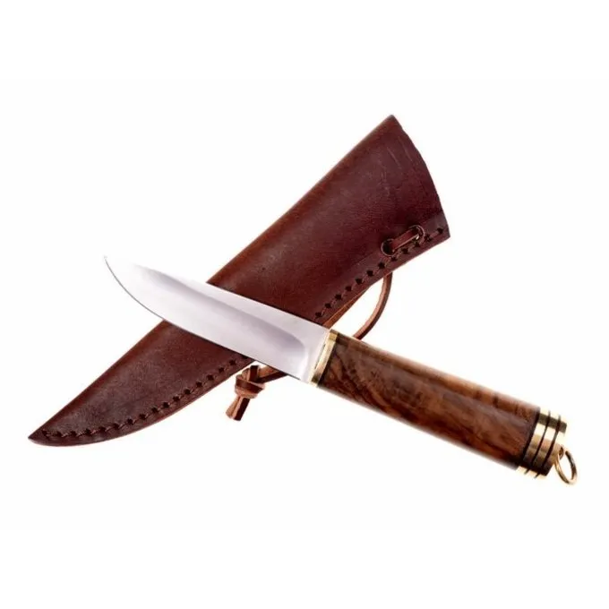 Das Wikingermesser basiert auf einem 9. bis 10. Jahrhundert Original in der Viking Stadt Dublin gefunden. Die Klinge dieses Messers ist poliert und ist aus 1095 Kohlenstoffstahl mit einer Härte von 56 HRC gefertigt. Der Griff ist aus Walnussholz. Messer wie diese wurde in der ganzen Welt Viking verwendet, aber auch bis zu dem späten Mittelalter.