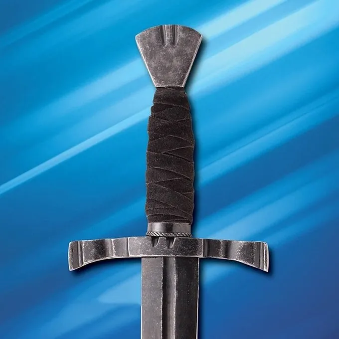 Jedes Modell wurde strengen physischen Tests unterzogen, um die Industriestandards zu übertreffen. Diese kampferprobten Waffen haben ein patiniertes Finish, wodurch sie noch authentischer und historischer aussehen. Jede Waffe wird in jedem Schritt des Herstellungsprozesses einzeln geprüft. Erst nach bestandener Prüfung erhalten sie die Schmiedemarke auf der Klinge. Jede Waffe wird mit einem Zertifikat geliefert, das von allen Handwerkern, die an der Waffe gearbeitet haben, unterschrieben ist. Ebenfalls enthalten sind eine passende Scheide und gegebenenfalls ein Schwertfrosch.